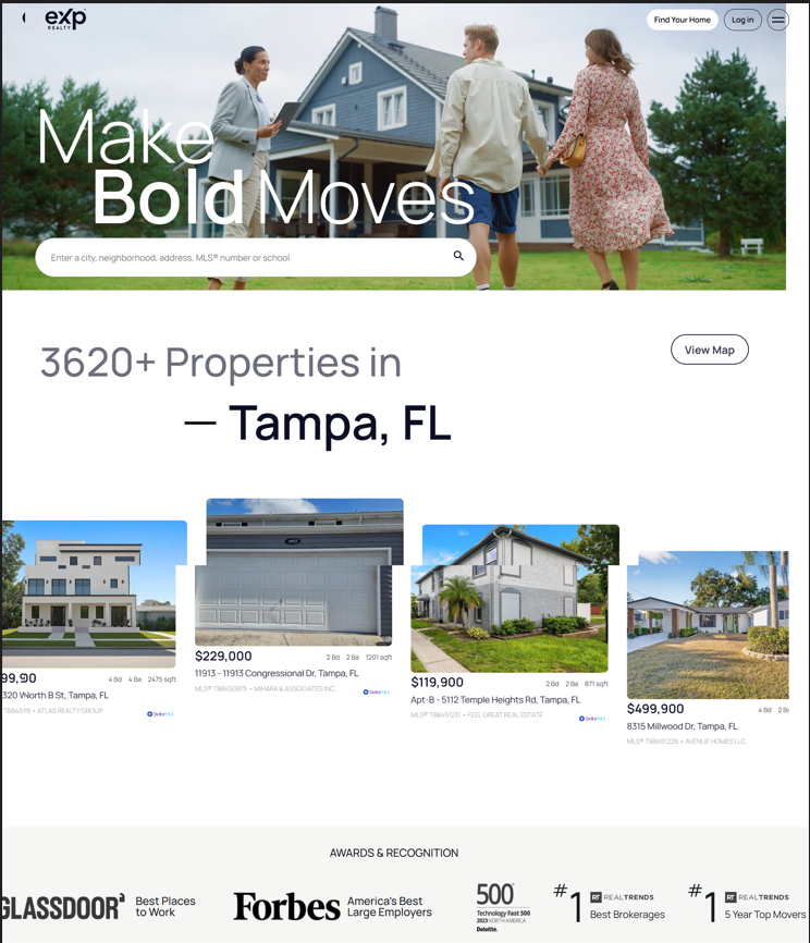 eXp Realty’s agent pages convert well thanks to their clean layout, strong hierarchy, and trust-driven design. Each profile blends agent credibility, active listings, testimonials, and clear CTAs, making it easy for visitors to evaluate the agent and take action quickly.
